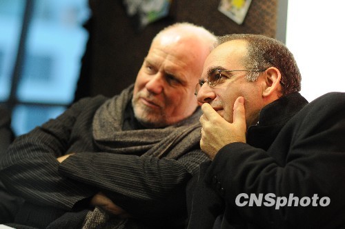 12月10日,威尼斯电影节主席马可·穆勒携意大利梦幻电影大师朱塞佩·托纳多雷在京召开大师班及新闻发布会。 中新社发 郑宇钧 摄