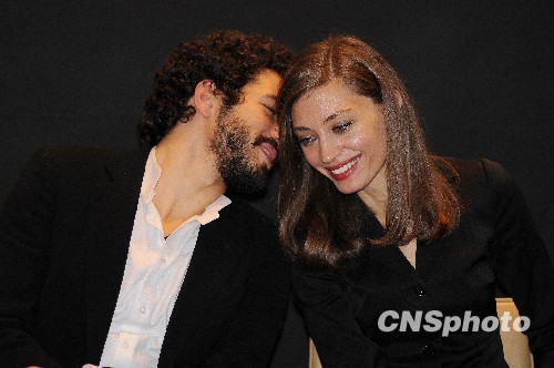 12月10日,第66届威尼斯电影节开幕片《巴里亚》女主角马格莱丝·玛德和男主角弗朗切斯科·夏纳。中新社发 郑宇钧 摄