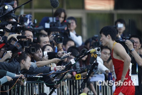 图:刘翔东亚运动会夺冠 接受媒体群访(2)