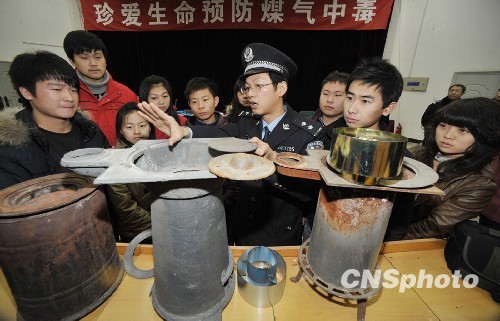 12月11日,北京警方会同有关部门利用学生课余休息的时间举行“珍爱生命健康、预防煤气中毒”的宣传活动,通过发放宣传材料、案例警示、教授使用炉具常识等形式,提示广大学生谨防煤气中毒。中新社发 李小燕 摄