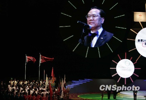 十二月十三日晚,香港2009东亚运动会闭幕典礼在香港体育馆举行,香港特区政府特首曾荫权宣布香港2009东亚运动会闭幕。中新社发 张勤 摄