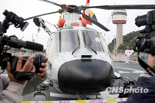 图为徐州号上的舰载直升机。中新社发 洪少葵 摄