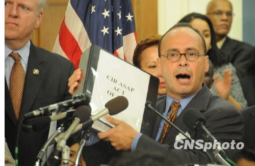 图为该议案的发起人、来自伊利诺伊州民主党众议员路易斯·古铁雷斯在十五日的发布会上介绍议案。中新社发 吴庆才 摄
