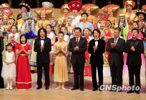 十二月十九日晚,澳门特区举行盛大文艺晚会,庆祝澳门回归祖国十周年。国家主席胡锦涛与演员一起唱响《歌唱祖国》。