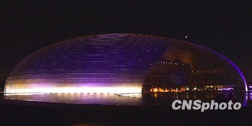 国家大剧院试灯迎两周岁生日。中新社发 玉龙 摄