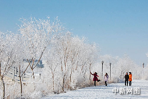 12月20日早晨,甘肃省西端的玉门市出现今年入冬以来的第四次雾凇,玉门新城处处银装素裹,树枝上由小冰晶结成的白色“外衣”非常美丽,远观而蔚为壮观,吸引了众多市民和学生纷纷踏雪赏景、拍照留影。