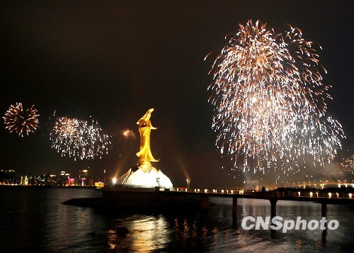 12月20日晚,澳门庆祝澳门回归十周年举行盛大烟花汇演。 中新社发 郑祚声 摄