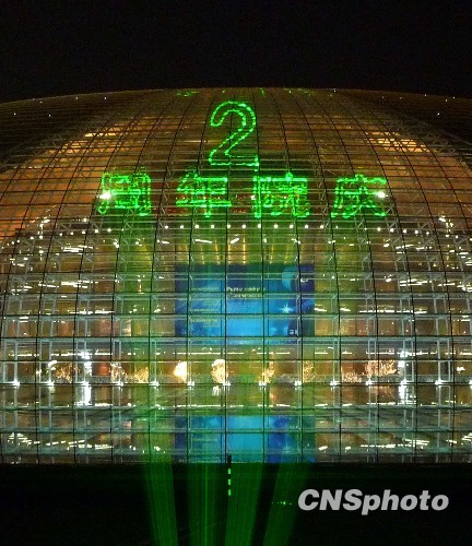 图:国家大剧院调试激光字幕迎2周年院庆(2)