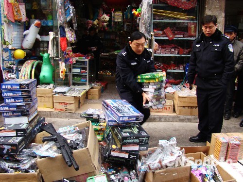 2009年1月3日,重庆云阳县公安局治安大队组织民警对新城批发商销售的仿真枪进行了集中收缴,对批发商进行行政拘留。据悉,这次行动共收缴仿真枪2850只,对5位批发商老板进行了行政拘留。
