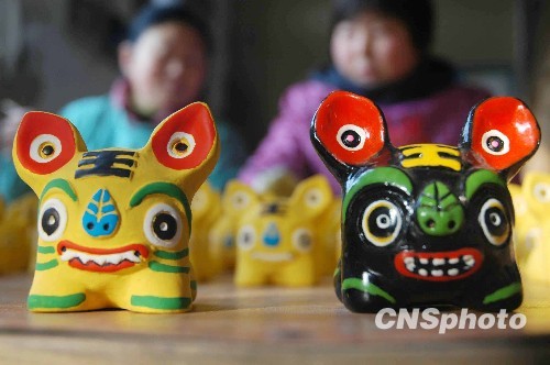 图:河南民间泥塑艺人创作五彩泥虎庆新年(2)
