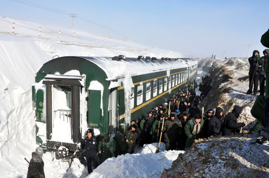 组图:暴雪冰封旅客列车 被困千人获救