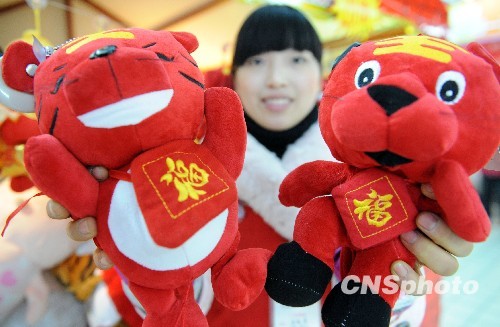 2010年1月6日,在安徽省亳州市的一家大型超市内,市民正在挑选各式布老虎。随着农历虎年的临近,市面上出现了各式各样的老虎玩具,布老虎作为中国传统老玩具,更是受到人们的欢迎。