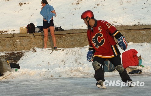 图:北京冰雪爱好者冬泳滑冰两不误(2)