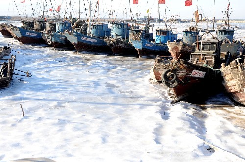 1月13日,受连日低温寒潮影响,连云港最低气温在-11℃至-13℃,沿海附近海域出现大面积海水结冰现象,整个海边、海湾、渔港成了冰海世界,导致大量靠港渔船被冰封。据当地渔民称,生活在海边几十年,从未见过如此大面积海水结冰现象。