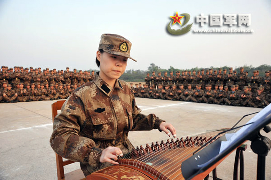 女兵陈佳煌表演的古筝独奏《笑傲江湖》震撼全场。韦君 摄