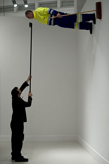 1月20日,德国艺术家约翰洛尔贝尔在西班牙南部的马拉加当代艺术博物馆表演行为艺术。