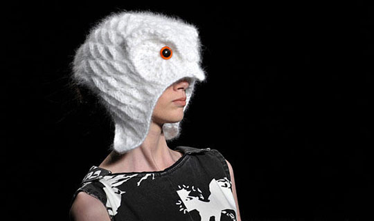 1月20日,在巴西圣保罗举行的圣保罗时装周上,头戴动物造型毛线帽的模特展示新款时装。