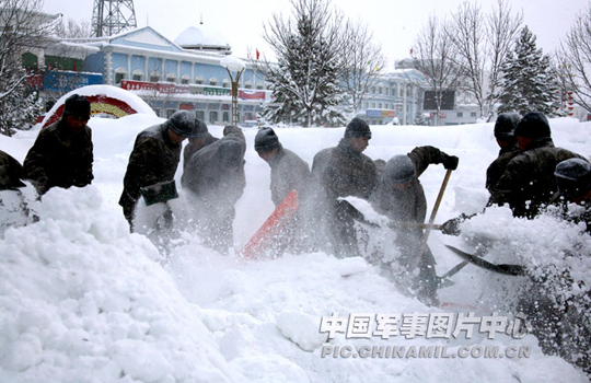 图:特大暴雪困北疆 官兵奋战抗雪灾(2)