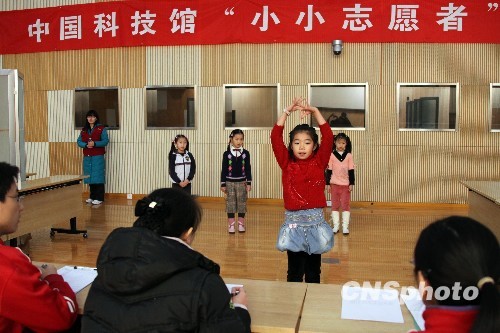 2010年1月23日,中国科学技术馆对报名参加该馆2010年寒假期间“小小志愿者”培训班的儿童,进行第一轮面试选拔。该活动面向8至13岁儿童,旨在推动更多小朋友走进科技馆,学习科学知识、培养科学兴趣,进一步增强语言表达、互动表演、组织沟通能力以及树立志愿服务他人的意识。培训结束后,小小志愿者将参与中国科技馆的科学实验表演及其他教育活动的志愿服务工作。