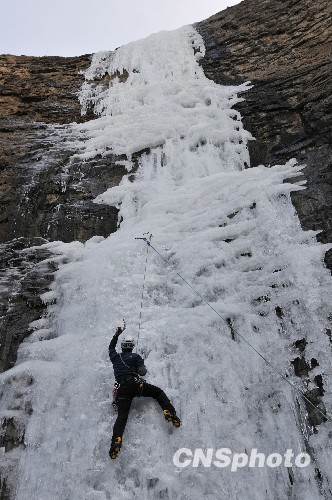 图:山东日照冰瀑奇观引来攀冰客(4)