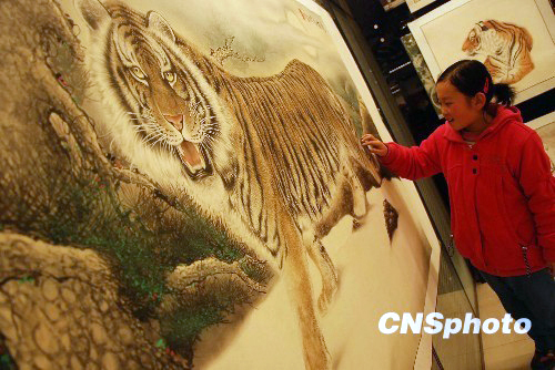 1月23日,“虎虎闹春赶城市庙会”暨全国民间年货和民俗工艺品大展演在太原开展。当天,来自山西和全国各地的布艺虎、国画虎、砚台虎等六大类50多种近万件虎态各异的老虎饰品,吸引了众多游人和市民参观选购。