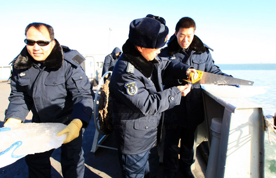 海军破冰船启航 调查冰情破冰救援(4)