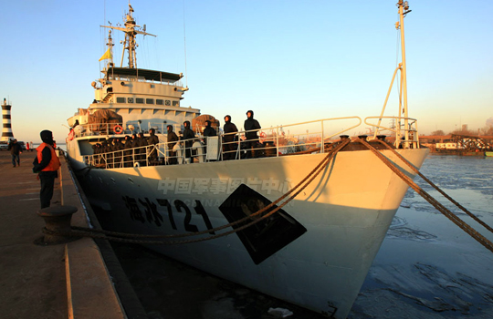 海军破冰船启航 调查冰情破冰救援(6)