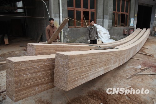 世界上最大的竹柱最长的竹樑日前在四川省长宁县制成,并于1月25日凌晨从该县竹海镇运往四川省彭州市磁峰镇地震灾区,用于“爱心家园”(孤残儿童福利院)灾后重建项目建设。
