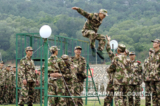 90后新兵身手不凡 “凌空飞渡”铁索桥(6)