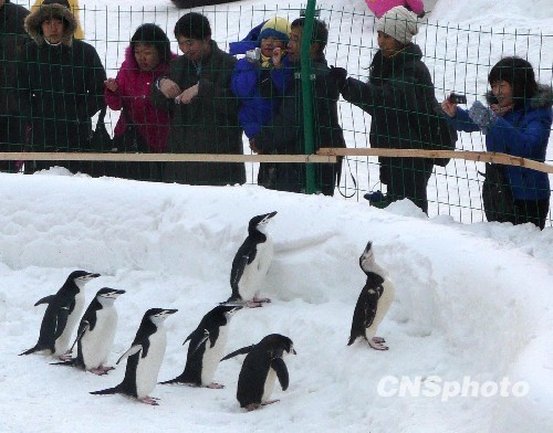 1月24日, 北京玉渊潭公园10只南极帝企鹅亮相首届冰雪文化活动节。它们憨态可鞠的摸样成为一道可爱的风景,引得众多市民纷纷前来观看。