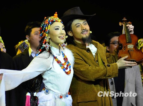 1月31日晚,中国歌剧舞剧院根据王洛宾同名音乐改变的大型歌舞剧《在那遥远的地方》在天桥剧场上演。该剧取材于上世纪30年代,讲述了“西部歌王”王洛宾在西部抗战演出途中发生的故事。全剧分为七场,包括《青春花园已荒凉》《集市》《半个月亮爬上来》和《美丽的眼睛》等多个组曲。青年歌唱家陈小朵在剧中分别饰演王歌妻子玉姗和藏族姑娘卓玛,其对角色的把控,以及扎实的唱功,博得满堂彩。