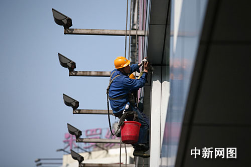 “蜘蛛侠”正在高空作业。中新社记者 张浪 摄
