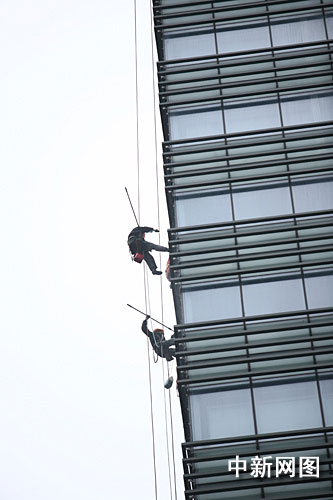 “蜘蛛侠”正在高空作业。中新社记者 张浪 摄