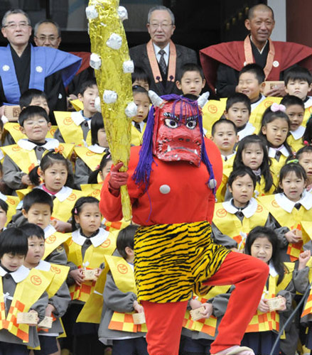 组图:日本幼儿园小朋友举行撒豆驱邪活动(3)