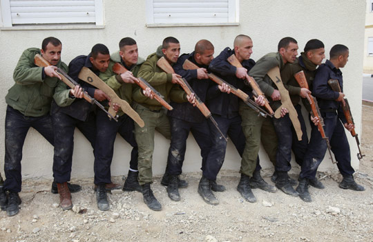 2月8日,在巴勒斯坦杰里科的一个培训基地,巴安全部队学员参加一次演习。