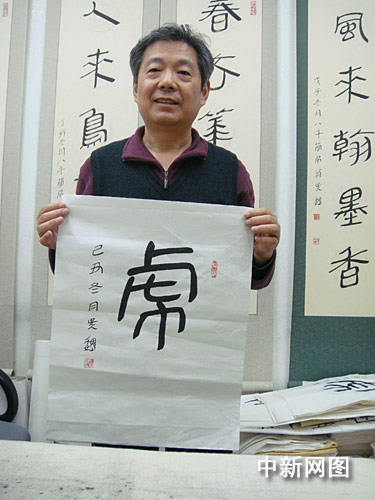 中国马王堆书法艺术研究院9日公布马王堆帛书标准“虎”字,图为中国马王堆书法艺术研究院院长吴巍。郑小红 摄