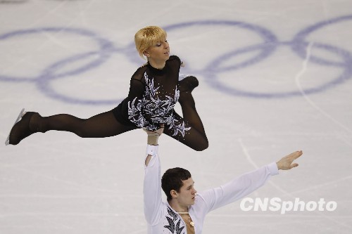当地时间2月15日,2010年温哥华冬奥会花样滑冰双人自由滑的比赛在加拿大温哥华太平洋体育馆。