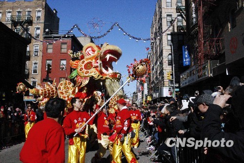 图:纽约唐人街十数万人花车狂欢庆虎年(3)