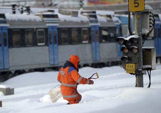 图:瑞典遭遇大雪 数千旅客滞留(2)