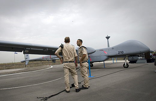 两名以军士兵站在“苍鹭”TP无人机旁。