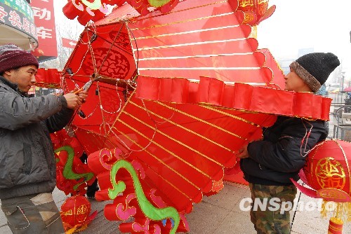 2月22日,山东邹平县元宵艺术节花灯安装完毕,即将开展。中新社发 董乃德 摄