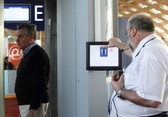 2月22日,一批新型安检设备人体扫描仪在法国各地机场“上岗”,重点检查去往美国的乘客。这种具有“透视”功能的人体扫描仪能够穿透衣服形成三维图像看清附着在身体上的非法携带品。