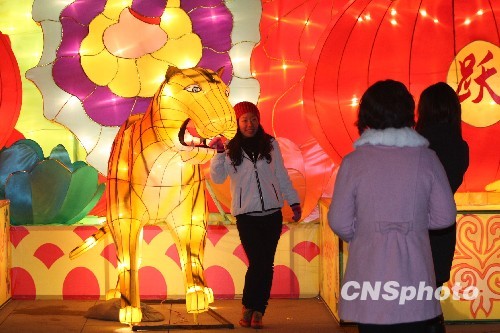 元宵节将近,在山东省文登市的文化公园里,60个具有民族特色的大型灯组提前点亮,市民在欣赏靓丽风景的同时,沉浸在浓浓的节日气氛中。