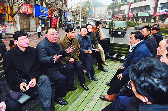 图为重庆市领导坐大卡车考察主城。万难/CFP