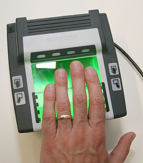 图为2月23日,澳大利亚移民局工作人员正在收集申请人的指纹。