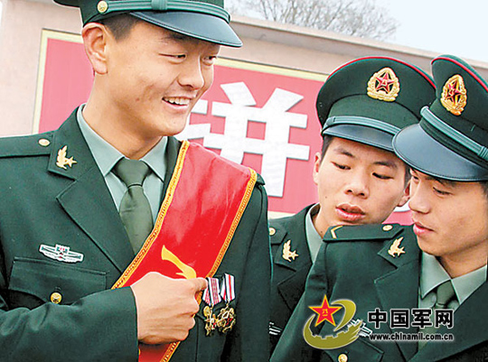 图:一等功臣为新兵授衔授枪(3)——中新网