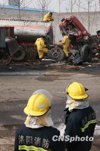30吨苯槽罐车翻车泄露 消防官兵成功排险(2)