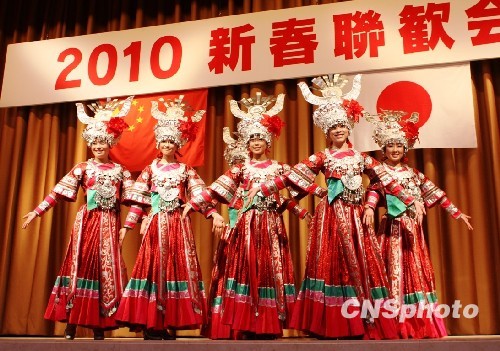 “四海同春”亚洲艺术团助兴横滨侨界新春联欢会。中新社发 关妍 摄