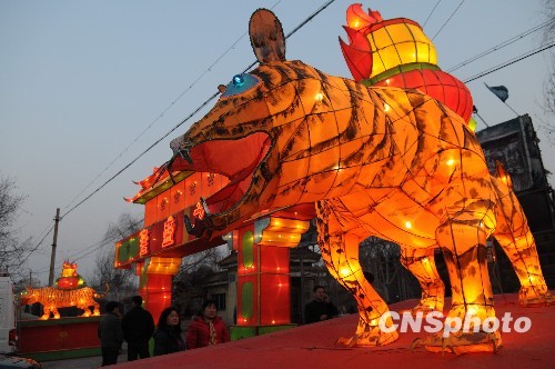 2月23日晚,几名游客在山东省淄博市淄川区奎盛园欣赏花灯。当日,第11届淄博民间艺术花灯节开灯迎客。投资近百万元安装的各类花灯有1000多盏,其中“中华腾飞”、“龙腾虎跃”、“金虎闹春”等大型机械灯30多组。整个灯会集“形、光、声、动、美”为一体,依山势组装,凸显特色,充分展现了淄博民间花灯艺术的精华。据介绍,灯展将于正月十六结束。