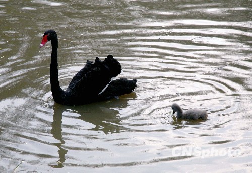 2010年2月23日,南京红山森林动物园刚出生不久的两只小黑天鹅宝宝和大黑天鹅一起戏水觅食。据介绍,这两只小黑天鹅是由饲养在这里的三只成年黑天鹅自然孵化,目前,小黑天鹅已能到户外觅食,并与游人见面。黑天鹅是天鹅的一种,产蛋很少,孵化成功率不高,繁殖期一般在春季,南京红山森林动物园的黑天鹅在冬天里孵化出小黑天鹅的现象则较为少见。
